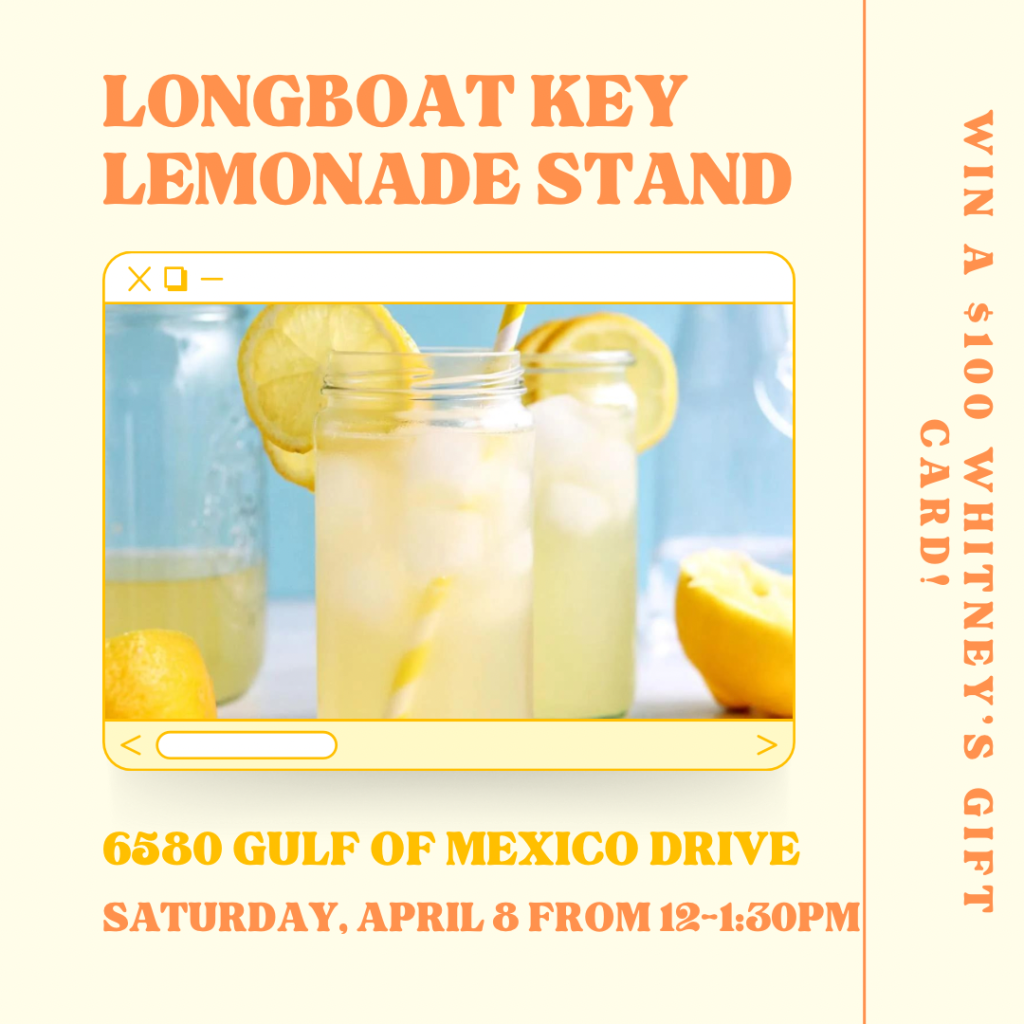 It's not just an Open House....it's a LEMONADE STAND OPEN HOUSE! Stop by my lot listing at 6580 GULF OF MEXICO DR, LONGBOAT KEY on Saturday, April 8 from 12-1:30. Not only will you be treated to some lemonade but will be entered to win a $100 Whitney's GIFT CARD!...