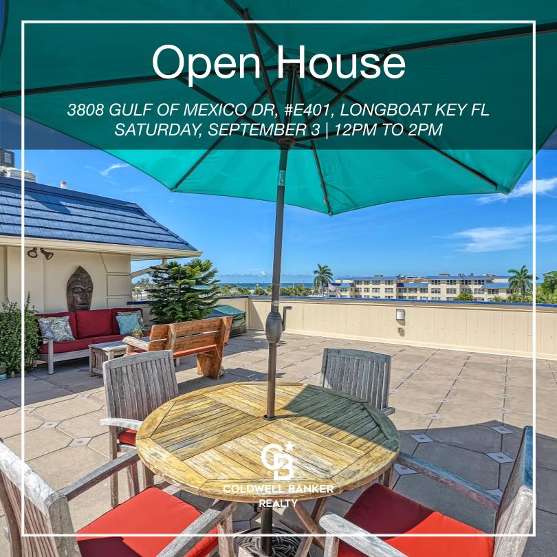 Come see me Saturday, September 3 from 12PM to 2PM at my fabulous penthouse listing in Beach Harbor Club! Address: 3808 GULF OF MEXICO DR, #E401, LONGBOAT KEY, FL 34228 2 bedrooms, 3 bathrooms, 1100 sq ft terrace, completely updated, 1750 sq. ft, boat slips, deeded...
