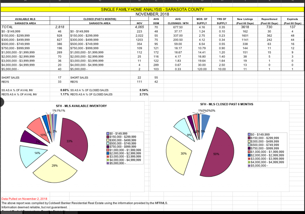 The most recent Inventory Reports for Sarasota and Manatee County were released this week. October Closings were up 9.3% year-over-year with 622 Closed units. Closed Average Sales Price was up 9.1% - indicating our region is holding appeal while other National...