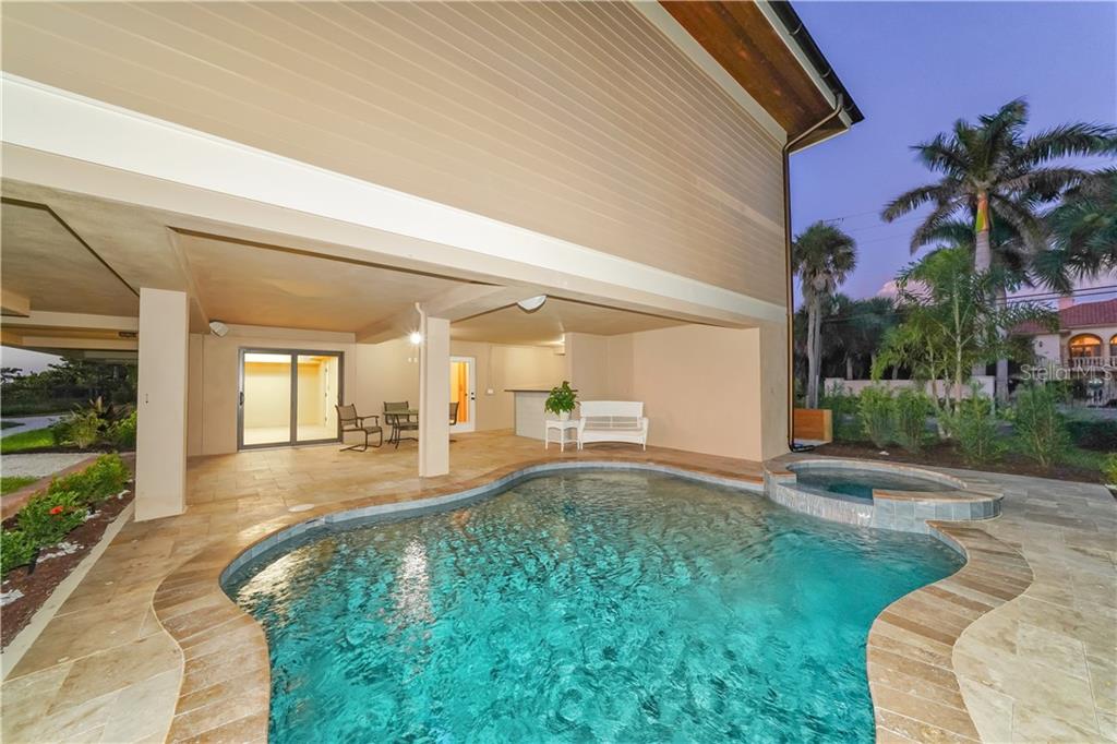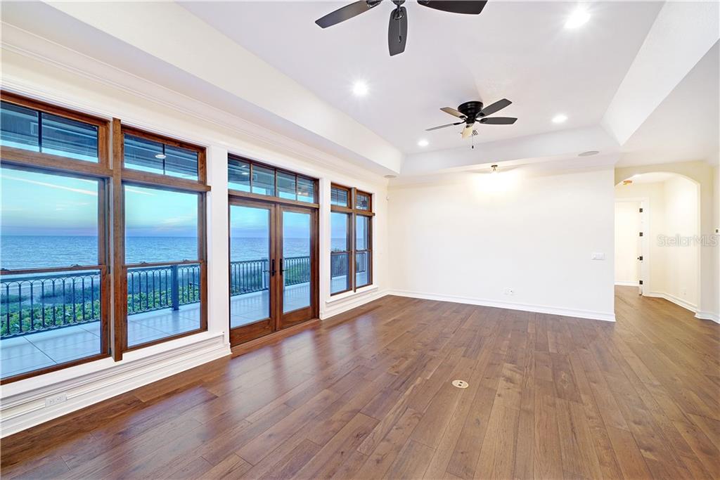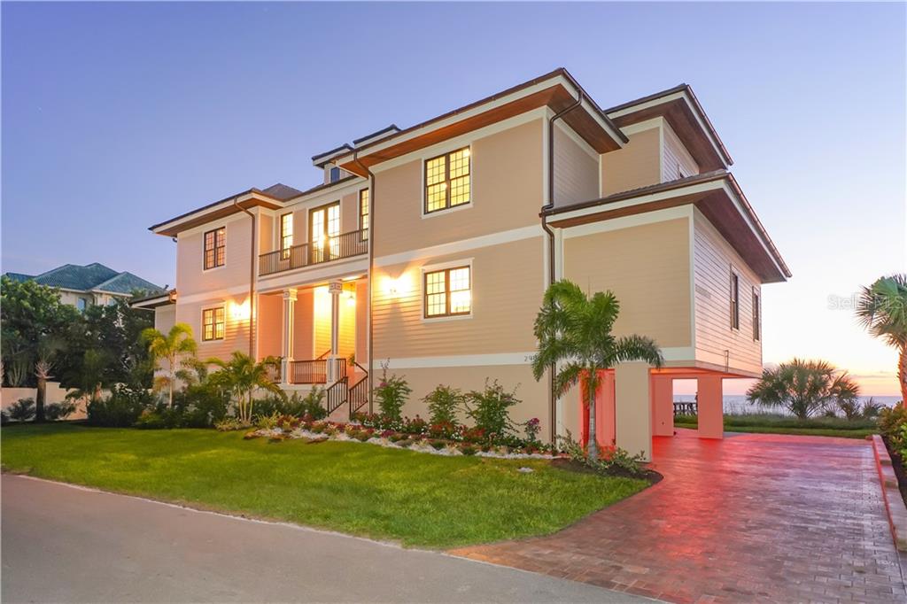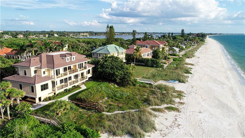 | The luxury of brand-new, Gulf-front living can be yours to enjoy at this stunning, five-bedroom beach estate. Situated directly on the private shores of Casey Key, this elevated home offers more than a half-acre of beachfront property and was just built in 2019. Designed to highlight breathtaking views of Gulf beaches and crimson sunsets from every room. The more than 5,300 SF interior, waiting for you to add your personal style, ideally blends timeless beauty and elegance. You will immediately love the blank canvas that this refined space creates. Overflowing with wonderful custom features inside and out, which include HardiPlank cement siding, manicured landscaping, impact Anderson windows and glass French doors, cathedral ceilings, crown molding, LED lighting, hardwood flooring and three-stop elevator. The first living level comprises a great room with walls of glass and wet bar, as well as gourmet kitchen with all-white staggered cabinetry, three ovens and 6-burner Viking gas stove, plus formal and informal dining is only steps away. Take your pick, upstairs or down, of master suites overlooking azure waves. The master wing in a southwest spot on the main floor features its own study, private vestibule, spa-inspired bathroom. The second level is devoted to guests, offering family room with built-in morning kitchen, four suites and beachfront terrace that spans more than 50’. Although the beach is your backyard, enjoying a refreshing dip in the brand-new swimming pool and tiled spa are ideal options.