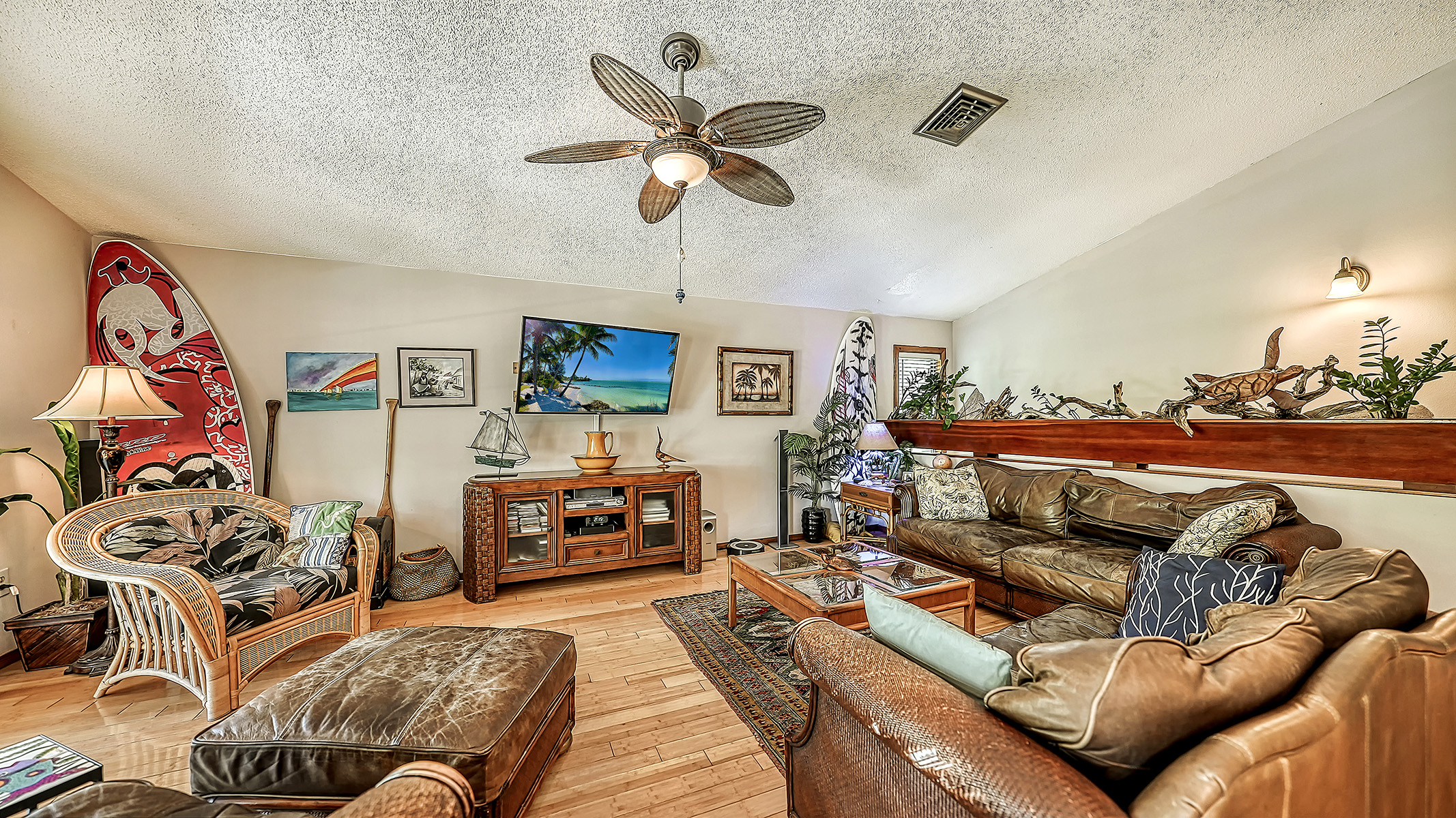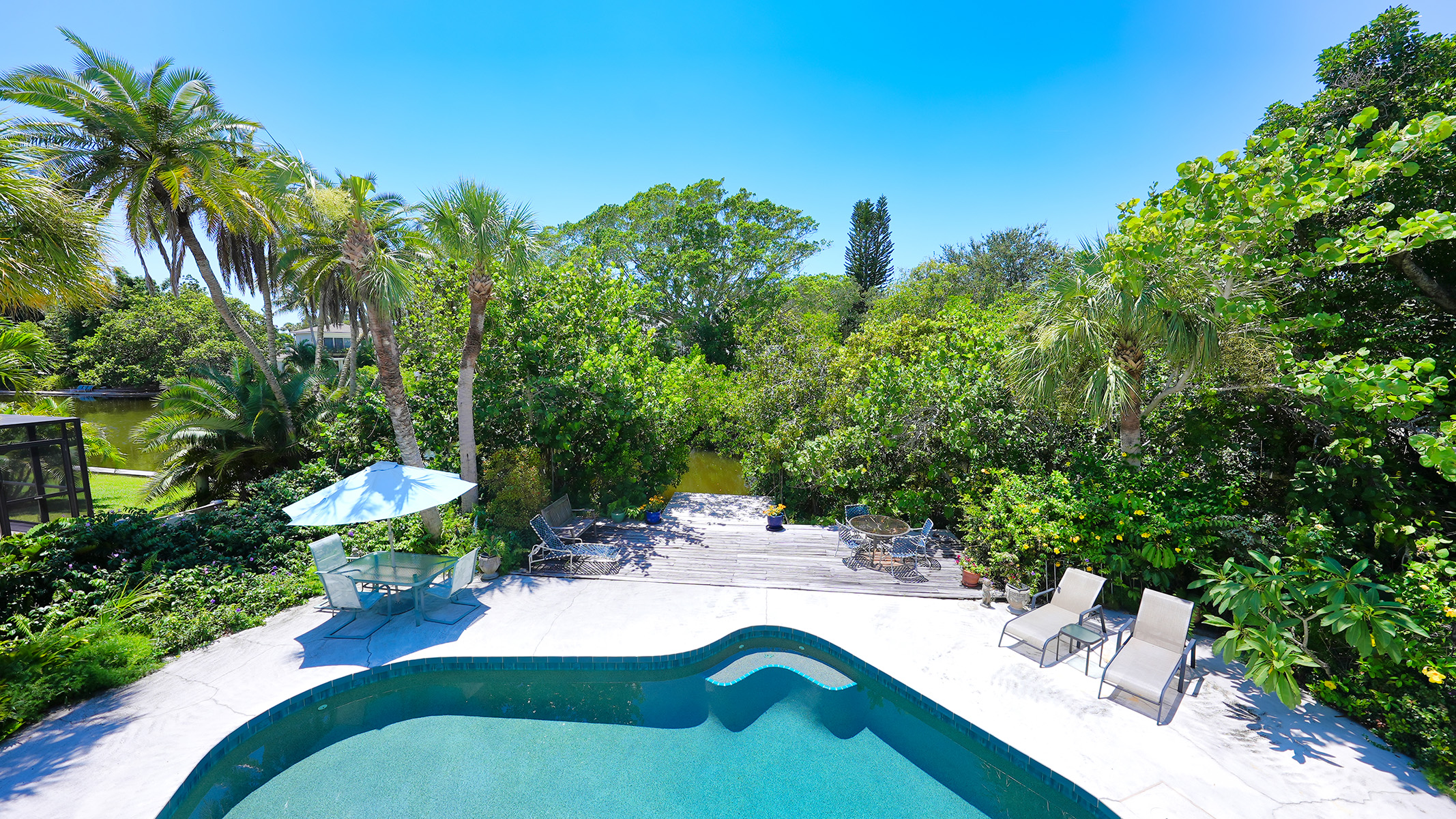 Florida charm exudes in this Siesta Key canal front home. Sitting on a larger than average corner lot and offering lots of mature foliage, mango and coconut trees, you’ll enjoy relaxing in your open pool as you soak up the rays and enjoy the birds and other wildlife around you. 103 feet of water frontage, much of which is covered with trimmable mangroves and includes a natural seawall, so there’s no need to maintain or pay for an expensive man-made seawall here! A bit of an irregular shaped lot line as well, with 155 feet deep; lots of room to play, grow, tear down or add on! A Key West feeling design, complete with metal roof, this 3 bed, 3 bath turnkey furnished property offers open living upstairs with a livable nonconforming space downstairs that isn’t included in the total under air square footage. Easy living with great room floor plan upstairs including: vaulted ceilings, 2 sets of French doors that open up to your oversized balcony overlooking the water front and backyard, bamboo flooring, master bedroom with ensuite bath plus guest bedroom and full bathroom. Downstairs could be utilized as a rental, mother in-law space, game room or other creative space since there is a separate entry from the main level. We are considering this to be the home’s 3rd bedroom. It features tile flooring, a full bath, Murphy bed and a path out to the pool and canal. Outside you’ll get to enjoy lots of privacy, large solar heated Pebble Tec resurfaced {2003} pool, outdoor shower and dock. Access both the Bay and Gulf of Mexico from your boat dock via the intercoastal waterway. Approximately 6 feet deep at the dock, the owner used to have a 17ft boat. To the other side, you’ll also notice a kayak launch! Other updates include HVAC systems {2009 & 2013}, new washing machine, metal roof, and Hardie Plank siding. Oh and this is neither in an HOA nor a CDD community which means no fees! Within biking distance to both the Siesta Key Village and world famous Siesta Key Beach. An easy, beautiful tree lined walk to the Out of Door Academy {ODA}, a highly sought after private day school for grades PreK-12th. Siesta Key offers something for all ages and downtown Sarasota even more, from exquisite to very casual in/outdoor dining options, boutique shopping, opera, ballet, open farmers’ markets and festivals, and a myriad of other options. Sarasota can be enjoyed by all ages, from those who like to stay active in the community, or the recluse who simply wants to enjoy nature and our area wildlife.