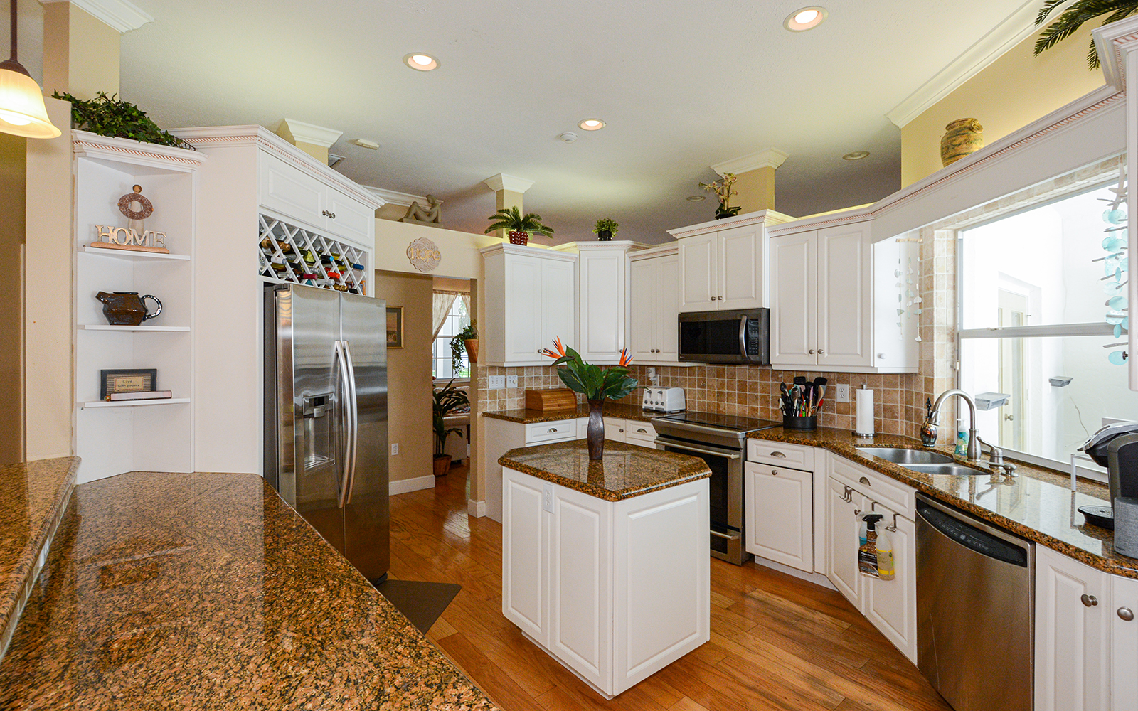 If privacy, proximity and a pool are what you’re looking for, this home in lovely Chimney Creek is the one! Located in a small enclave of 46 custom homes that border the Meadows G&CC, this property is situated on an oversized lot with lots of mature landscaping. Close to UTC mall, world renowned Benderson Rowing Park, 17th Street Paw Park, the interstate, Celery Fields, Sarasota’s downtown restaurants, theater, and #1 Beaches in the USA, including but not limited to Siesta Key Beach! In a cul de sac, this one story 4b/3ba pool home has a functional split plan layout with formal and informal dining and living areas, ample space in the family gathering and eat in area and completely private master suite area that features two large walk-in closets, dual sinks, separate tub & shower. Each bedroom is spacious and offer walk in closets too. Alarm system with CO2 and glass break detection. Cathedral ceilings will give you that open and spacious feeling. Sliding glass doors surround the sizable covered and screened pool and deck area for access from many rooms in the house. Enjoy ample seating underneath the elements, while friends send food or beverage through the convenient passthrough or worship the sun from your pool deck or inner tube, in this NE facing caged lanai. Full sized laundry room off of the garage entry. Extra nook or workshop space in the garage. Low HOA annual fee. Not in a flood zone. Shingle hip roof NEW ’12. 5 ton Trane AC unit 6/’19. Fridge ’15. Fencing allowed.
