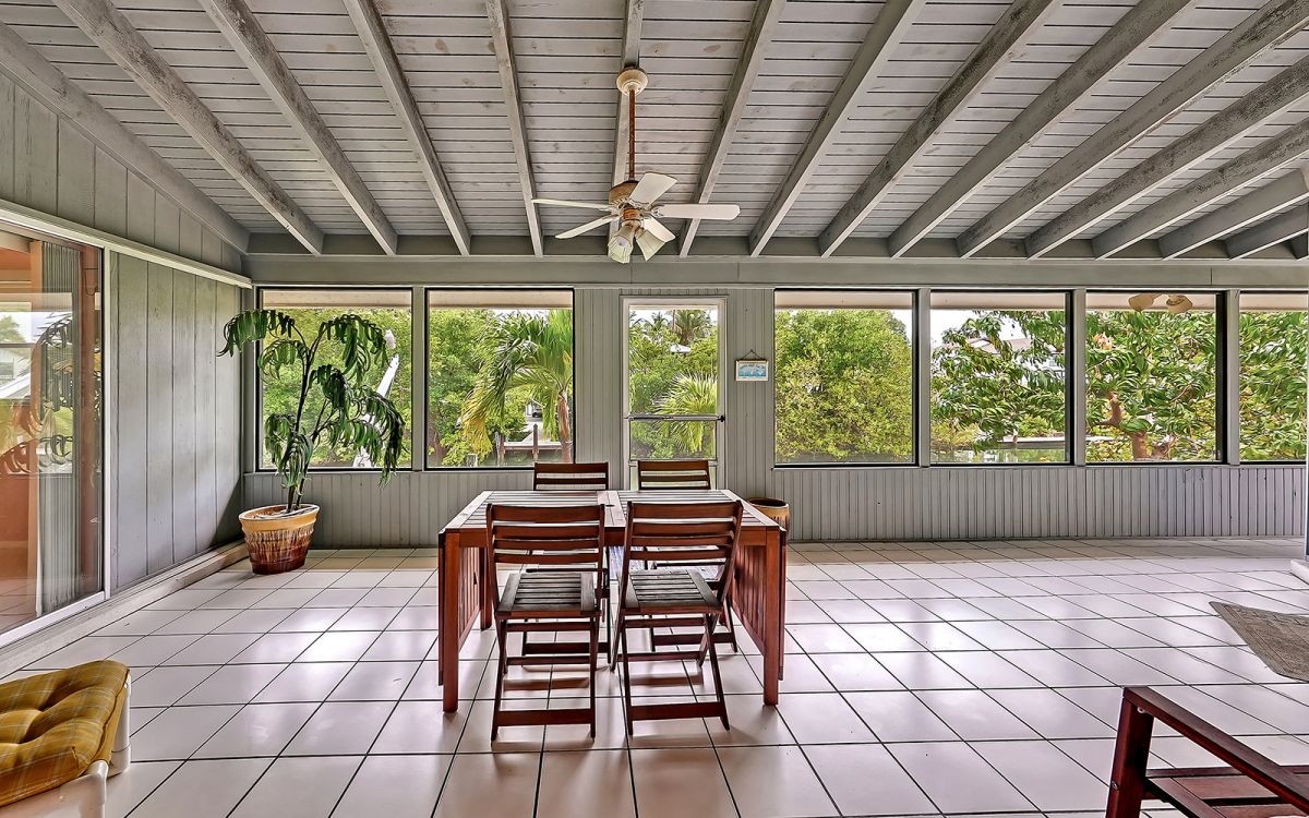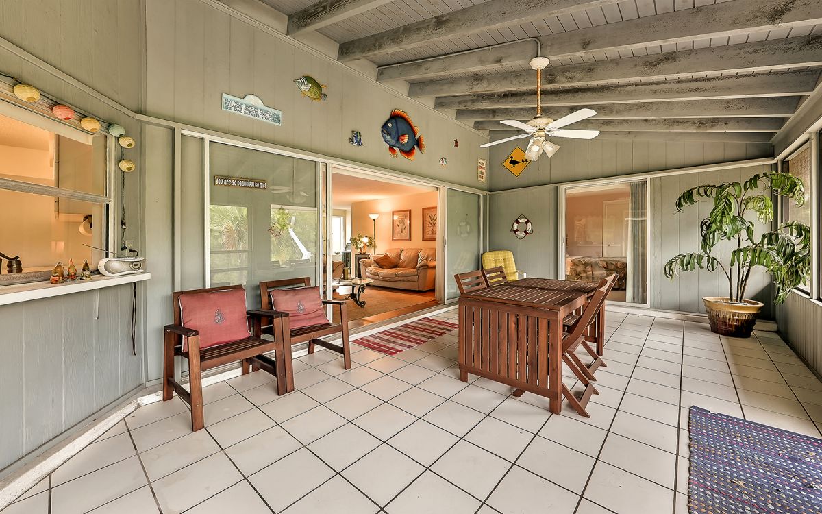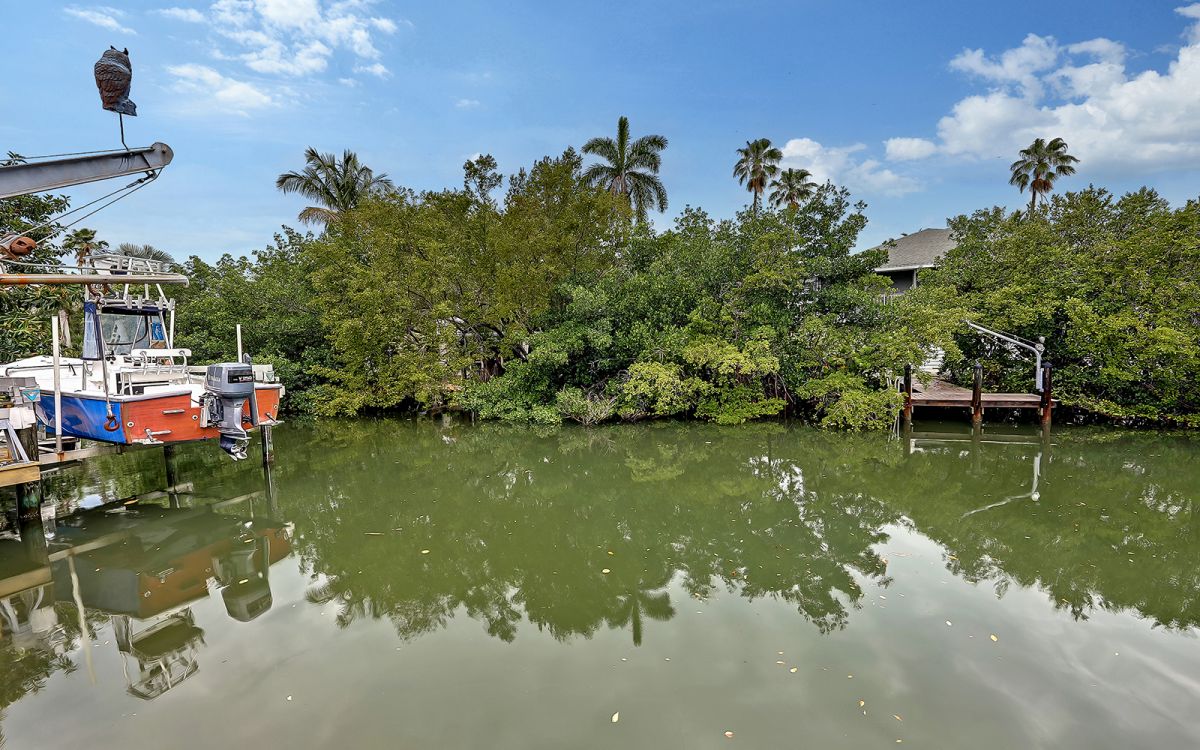 Opportunity Knocks! Located on the Manatee County side of Longboat Key, this relaxed neighborhood of 269 homes along both sides of Gulf of Mexico Dr is so appropriately deemed Sleepy Lagoon for it’s quiet & peaceful vibe. While easy to miss without signage, the community extends from Edlee Ln to Shinbone Alley on the bayside and to the West on Gulfside Rd. Both the architectural styles & price ranges vary wildly, you will notice 1-to-3 story residences, ultra modern new builds, to West Indies uber mansions. This nicely situated single family, 1-story home sits quite desirably midway up the canal with 100 feet of water frontage and 100 feet deep to the road. Although the tax record indicates it to be built in 1974, effectively it also reflects 1996 due to the updates at that time. All that’s needed is your toothbrush and personal effects, as this property is being sold turnkey furnished as you see it. 3 bed, 2 full baths with the under air square footage not including the covered and screened lanai, which adds another 374sf of truly Florida living space. Open up the kitchen should you desire or leave as it is, which is quite livable. Lease it out like the owners have during season, or use as a respite from the Northern harsh winters. Watch fish jumping and boaters passing by along this deep water Harris Canal, also on a dead end. Easy walk to the public beach, just stroll back down DeNarvaez, hang a left onto Gulf of Mexico Rd and then walk down Gulfside Road to the pristine Longboat Key Beach. Open, split floor plan. Fruit trees on property. Massive covered lanai allows for ample additional living space facing the canal with lovely passthrough from the kitchen and sliders throughout.