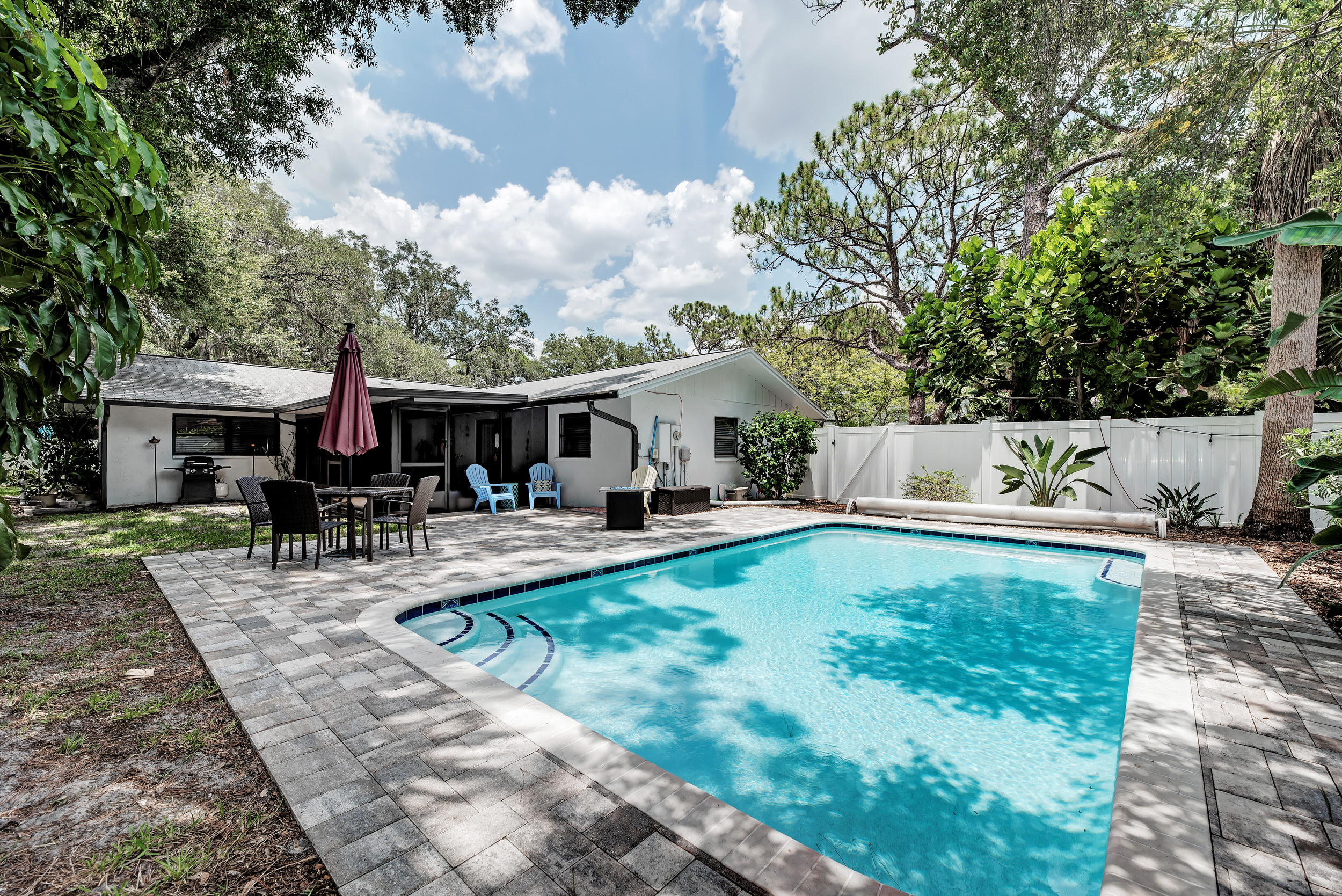 UNDER CONTRACT IN 5 DAYS ! Pursell Acres, a small enclave of homes in a non deed restricted neighborhood, is located conveniently off of Beneva and Webber which is approximately 15 min to America’s #1 beach, Siesta Key Beach, just SE of downtown Sarasota where you’ll find art and cultural activities in abundance as well as the future extension of the Legacy Trail! Ideal starter home, great for a family or a first time buyer, this property offers a fully fenced {with PVC} yard on over a quarter acre; ideal for the little ones, pets or privacy. Not to mention the back yard and pool area face due West so you’ll be able to soak in those incredible sunsets 365 days a year. Desirable school districts. Brand NEW pool, pavers and hot water heater in 2015, NEW AC unit in 2018 and NEW lanai roof and cage in 2019! Shingle roof has 3-4 years’ life remaining so should qualify for FHA or VA financing as well. This single story ranch home offers 3 bed, 2 bath on a split plan layout which creates additional privacy for everyone, centering around the galley kitchen. Other features include: recessed lighting, granite countertops, shaker cabinetry and stainless steel appliances. Ample room to park a boat, RV or other toys. Roof age is approximately 2005. 2-car garage too! NOT in a flood zone, NO HOA or CDD fees here… just come, bring all of your toys and simply enjoy FL living here in the sun!
