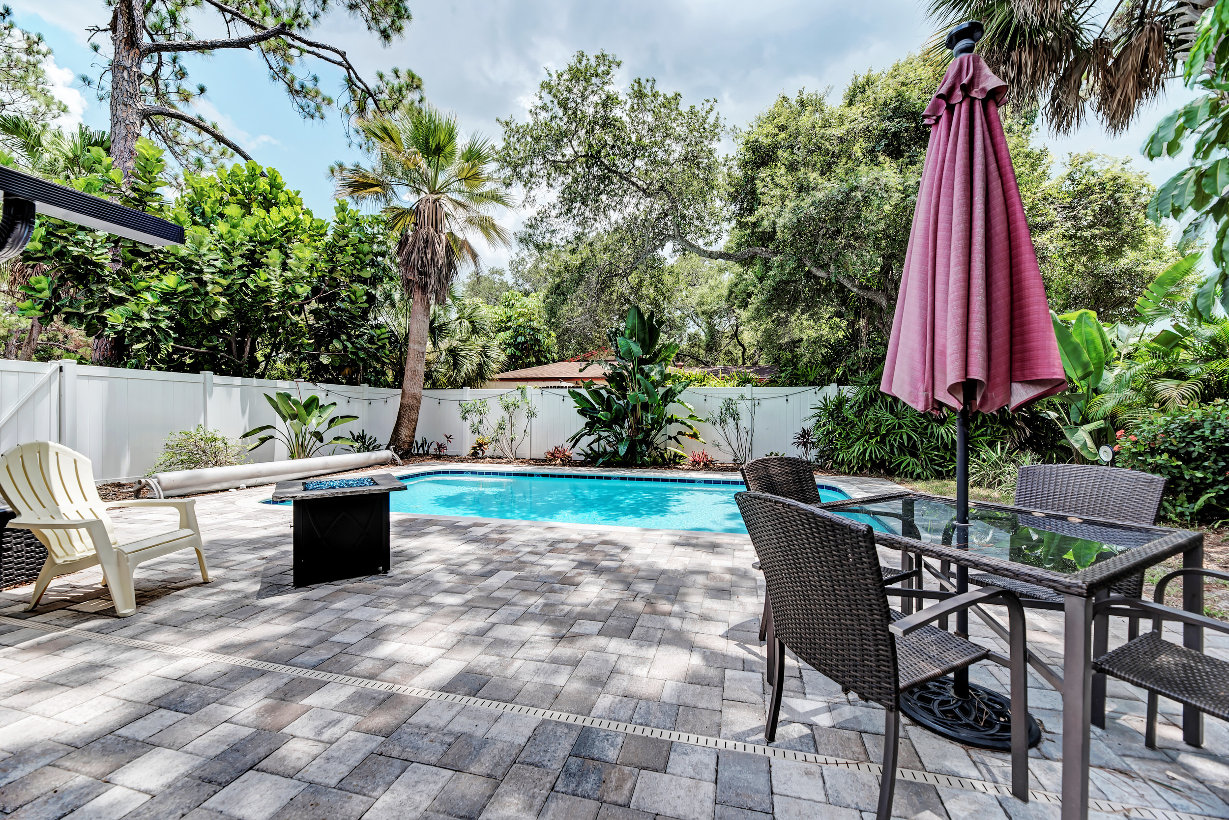 | Pursell Acres, a small enclave of homes in a non deed restricted neighborhood, is located conveniently off of Beneva and Webber which is approximately 15 min to America’s #1 beach, Siesta Key Beach, just SE of downtown Sarasota where you’ll find art and cultural activities in abundance as well as the future extension of the Legacy Trail! Ideal starter home, great for a family or a first time buyer, this property offers a fully fenced {with PVC} yard on over a quarter acre; ideal for the little ones, pets or privacy. Not to mention the back yard and pool area face due West so you’ll be able to soak in those incredible sunsets 365 days a year. Desirable school districts. Brand NEW pool, pavers and hot water heater in 2015, NEW AC unit in 2018 and NEW lanai roof and cage in 2019! Shingle roof has 3-4 years’ life remaining so should qualify for FHA or VA financing as well. This single story ranch home offers 3 bed, 2 bath on a split plan layout which creates additional privacy for everyone, centering around the galley kitchen. Other features include: recessed lighting, granite countertops, shaker cabinetry and stainless steel appliances. Ample room to park a boat, RV or other toys. Roof age is approximately 2005. 2-car garage too! NOT in a flood zone, NO HOA or CDD fees here… just come, bring all of your toys and simply enjoy FL living here in the sun!