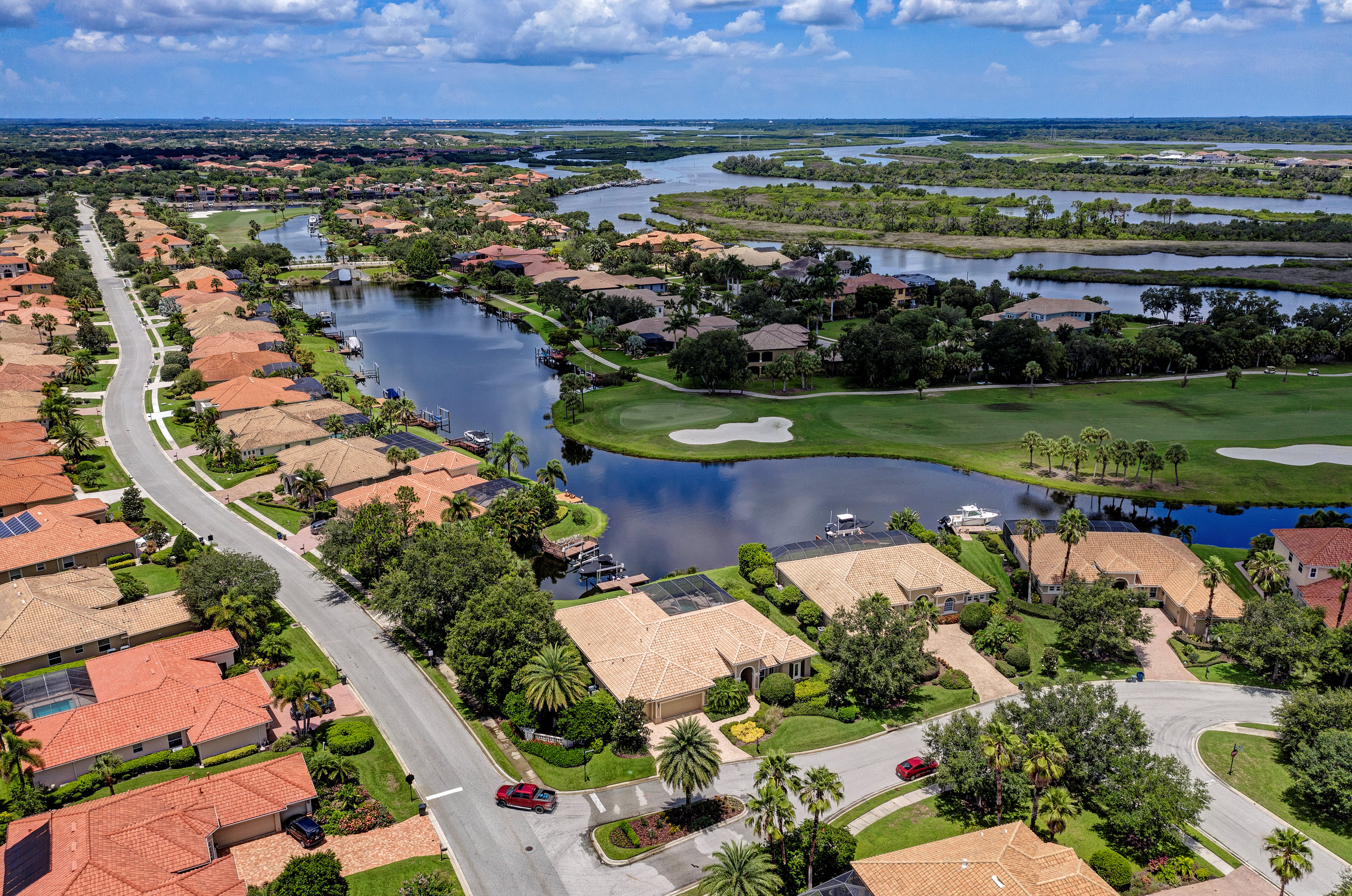 For the most discerning buyer who can’t decide between golfing and boating, Waterlefe is it!!! Located behind the gates of Waterlefe Golf & River Club, this ’03 home will impress you with its impeccable condition. From the outside in & floor to ceiling, pride exudes. You’ll notice the upgraded barrel tile roof, paver driveway & manicured landscaping alongside the 3-car garage. Custom mahogany front doors w etched glass & long canal view will capture your attention, particularly at sunset. This corner lot features privacy as you sit out in your summer kitchen & pool deck area or from inside. Generously sized kitchen w/island, granite countertops, built-in wine fridge, new top of the line KitchenAid dishwasher, spacious pantry & enormous aquarium window. Notice the split plan with master separate, featuring 3b/3ba/den/generous bonus room. Surround sound throughout, central vac w/foot kickers, crown molding, pecan wood floor in the den, disappearing slider, extra large master suite with his/hers closets and more! Walking down the paver steps & onto your 0 maintenance treks dock w/12,000 lb lift, you can hop into your 38 ft. (max) boat. As you meander down the freshwater canal from the boat, a lift will take you onto the Manatee River side, where you can enjoy the many restaurants on your way out to the Gulf of Mexico! After a day out in the sun, come back to splash in your heated, self-cleaning pool & spa or grill out on your built-in gas cooktops either indoors or out. This home will be a pleasure to see!