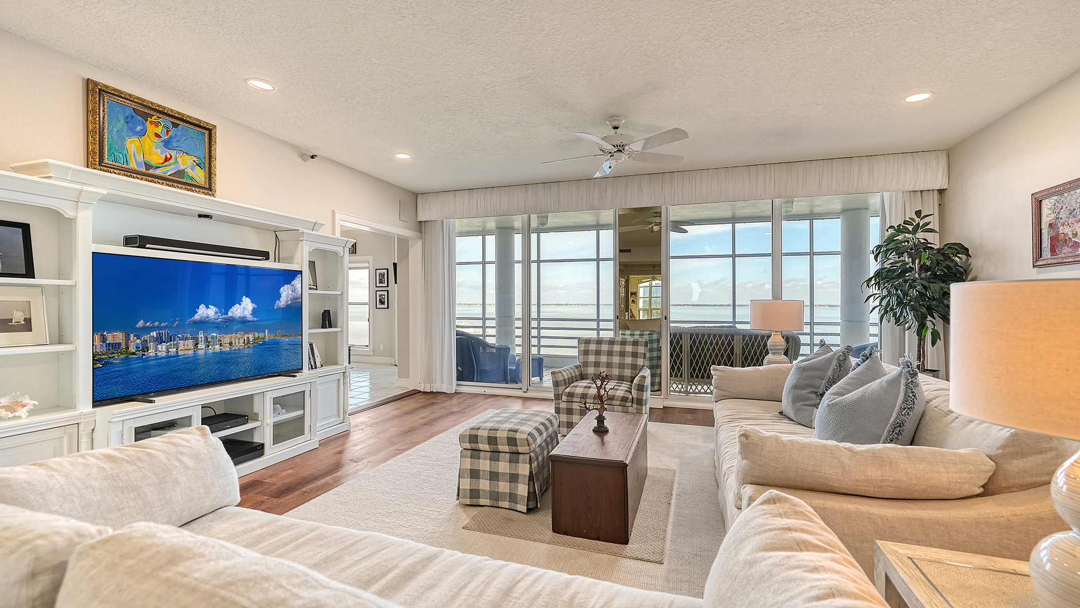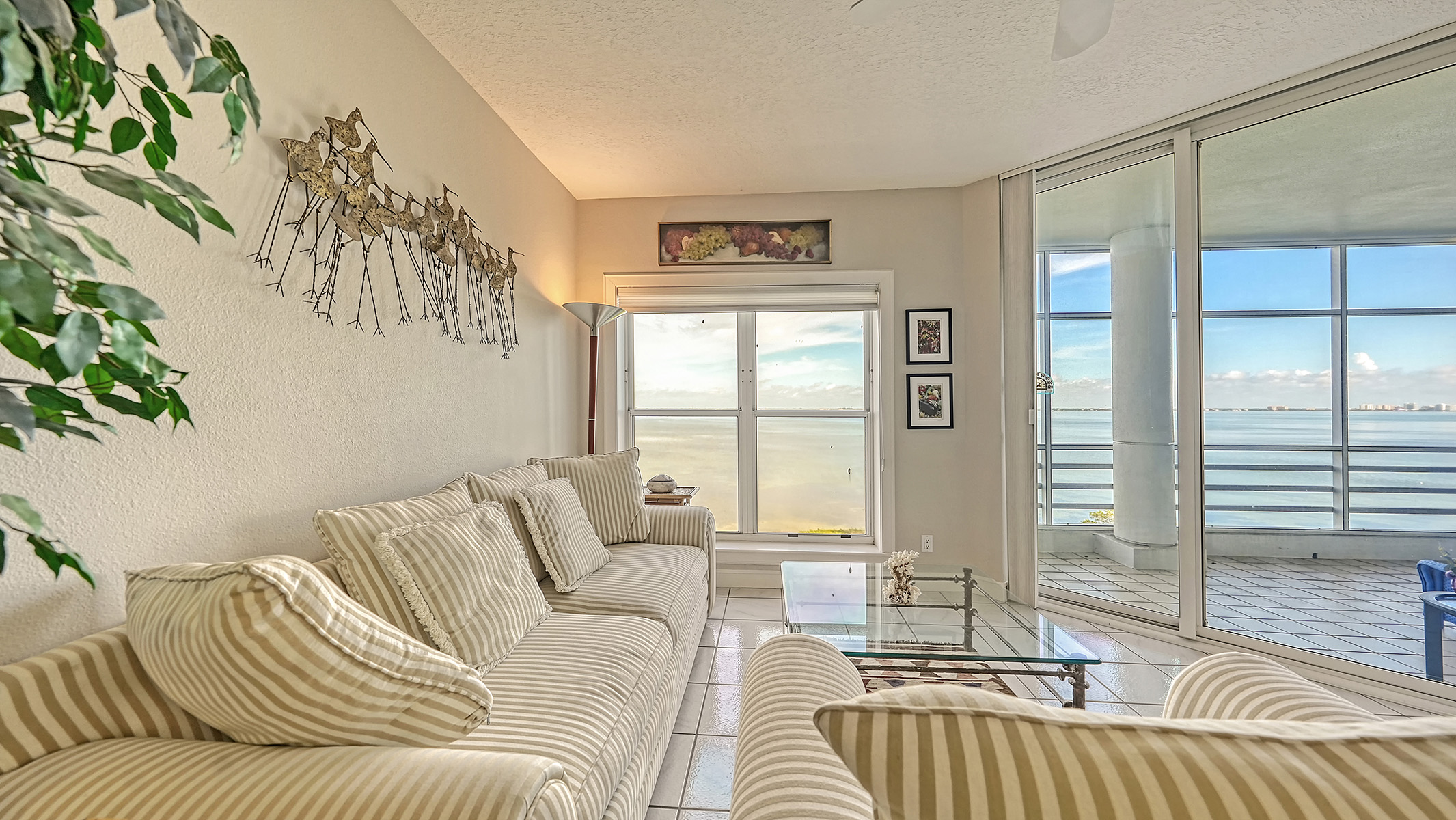 Security, serenity, sunsets AND sunrises…you can have it all with this rarely available property. Soothing views and a sprawling layout in a coveted location, both behind the gates of Bay Isles, and a stone’s throw from the LBK Moorings on Longboat Key, this Marina Bay condo will immediately feel like home. A prized community that is both well managed and impeccably kept, it is comprised of three buildings and a total of 60 residences, perfect for either a full or part time resident. Walking into this home, you’ll be greeted both with an abundance of natural light and space. A sizable foyer opens up into this almost 3,000 square feet of living space. Directly behind the foyer you’ll find the 3rd bedroom, currently being utilized as an office, great for a murphy bed or flex space and offers a private balcony that is shared by the 2nd bedroom behind it; of which the views are pretty stunning, offering a peekaboo glimpse of the Gulf of Mexico, beautiful palm trees, charming neighboring homes and the esteemed Longboat Key golf course. Wait until you see the main event, the 30 foot long covered and screened lanai that overlooks paradise, wrought with birds, manatees, and the sheer thrill of watching boats pass by and the city skyline of Sarasota light up at night. If cuisine is your forte, the gourmet kitchen, with its views of the bay, is complete with not only with breakfast bar, but large dining and sitting spaces, Whirlpool appliances, double oven and cooktop, stone countertops and backsplash, built in desk and wet bar. Very generously sized laundry room directly off of the kitchen that includes extra countertop space, storage cabinetry and full sized washer and dryer. Not only do you have a massive living room but also an additional sitting nook that could be converted into a number of different uses, including a 4th bedroom, game room or the like; currently being used as a reading room, complete with built ins and lots of storage. If you have a knack for art, you’ll find both the picture lighting and recessed lights fabulously placed throughout the residence. With views and balcony access from the primary bedroom and a generously sized updated bath, with two walk-in closets, you’ll surely find it to be a great reprieve. Dual sinks, stone countertops, garden tub, separate shower and private commode closet and bidet all complete the necessities of luxury living in your master bathroom area. A rare commodity on the island, your fur babe is also invited, as Marina Bay allows 1 pet! A highly secured area, the condo not only requires access through one manned gate, but also building codes and enclosed garage access. An added bonus is this unit only shares the floor with one other unit. This condo also comes with one under-building parking space and separate under air storage unit. The community amenities are complete with fitness room, large pool, spa, and tennis courts {on the N side of the community}. Car washing and EV charging stations for owners’ and their guests’ use. As a resident of Marina Bay, you also get the privilege of enjoying the private Bay Isles Beach Club access. There you’ll find a gated and secured entry, ample parking, covered entertaining area, restrooms, changing rooms, covered picnic tables, barbecue grills, volleyball court and beach accessory storage bins.