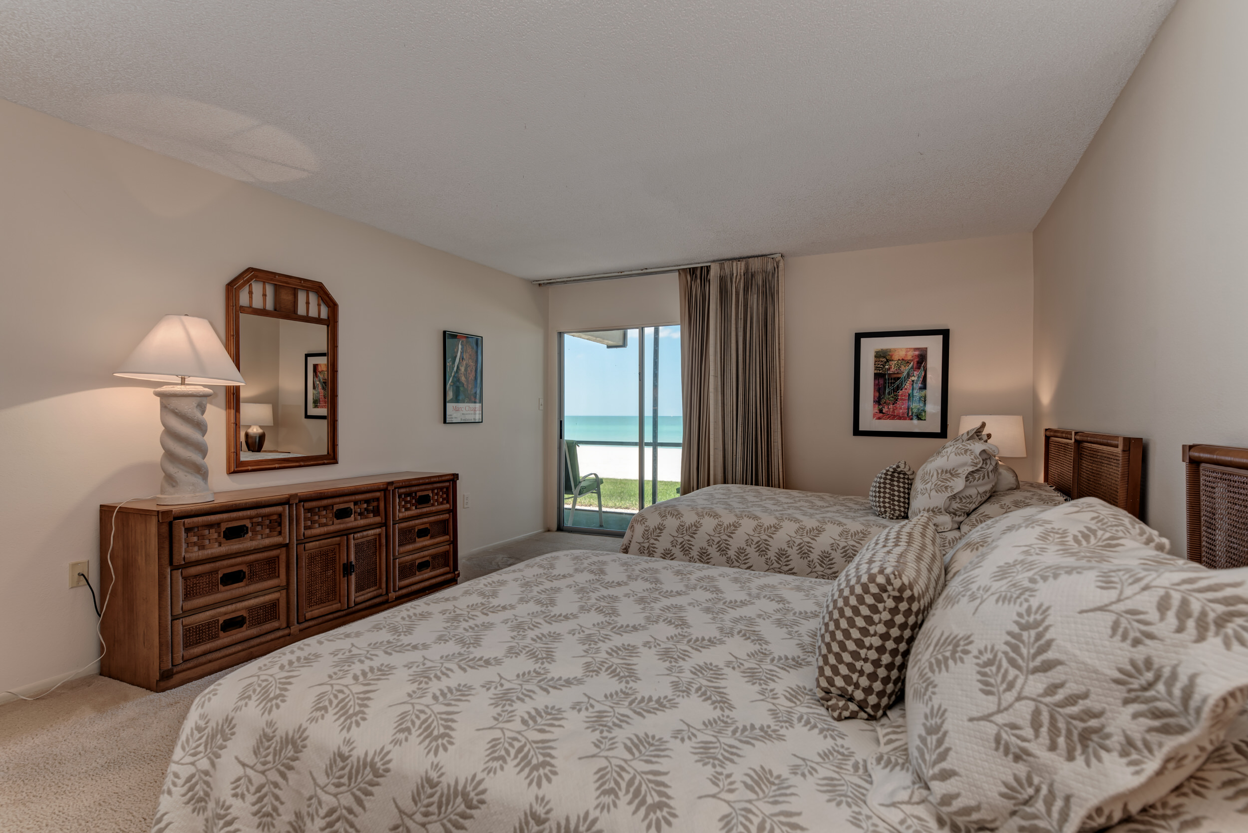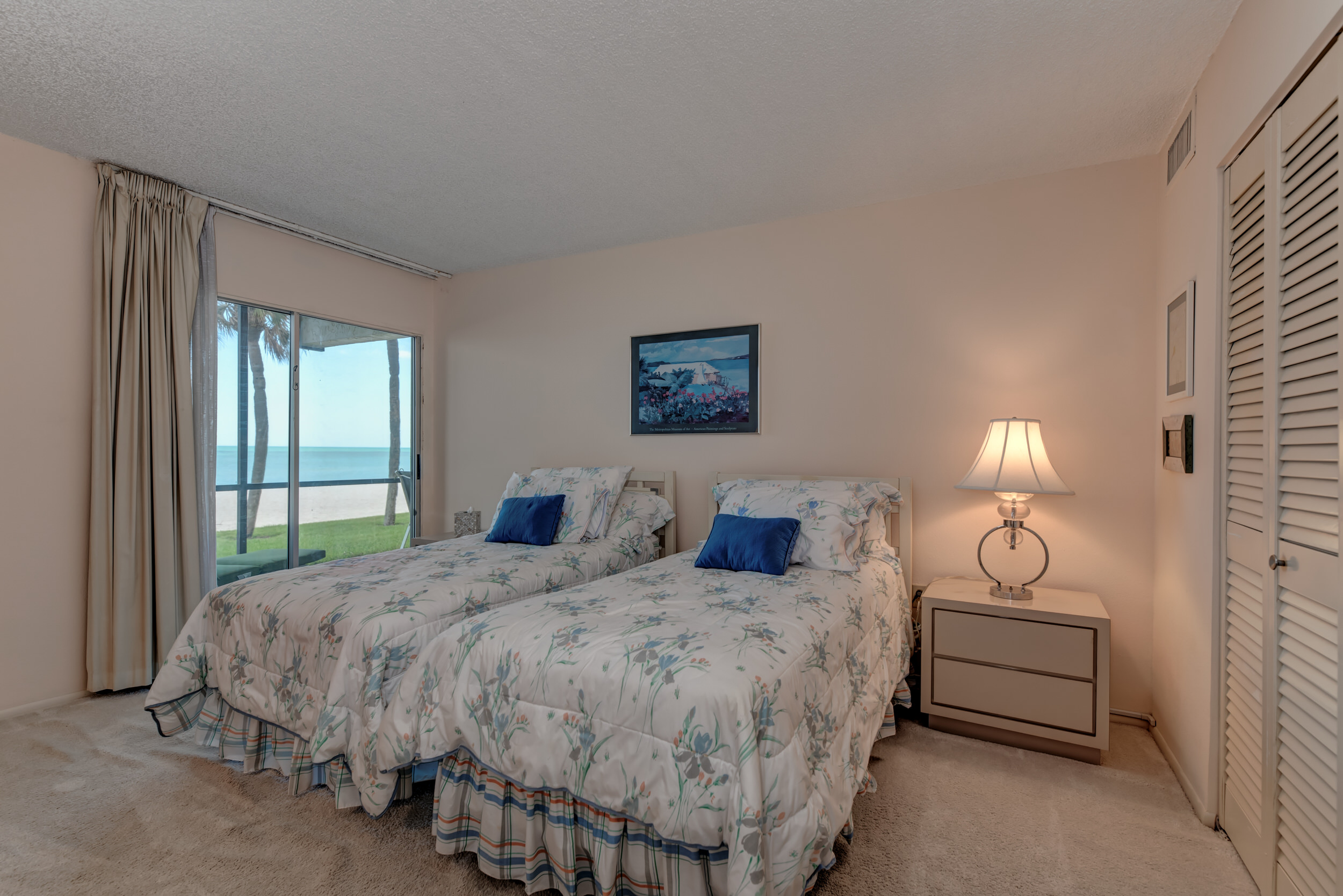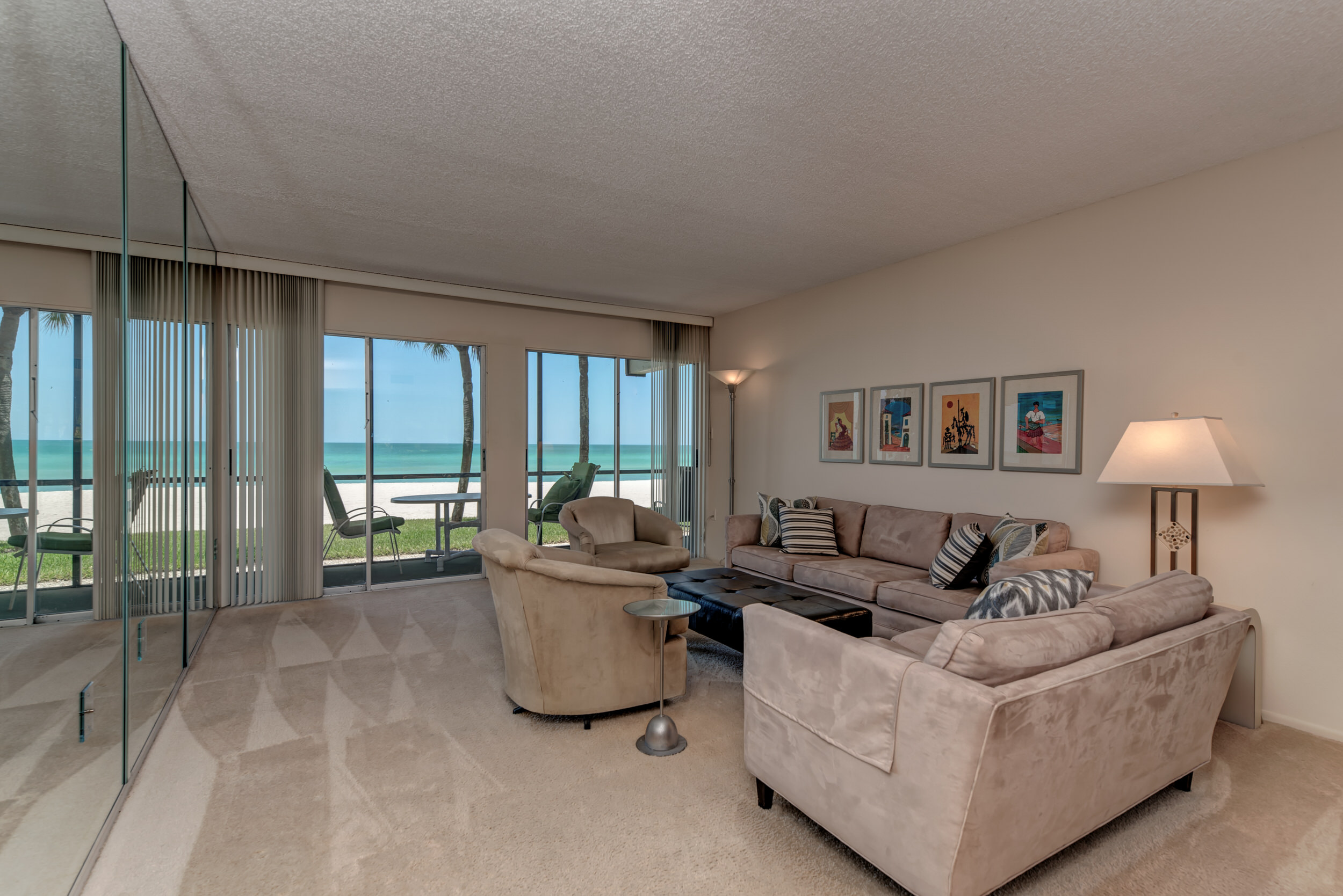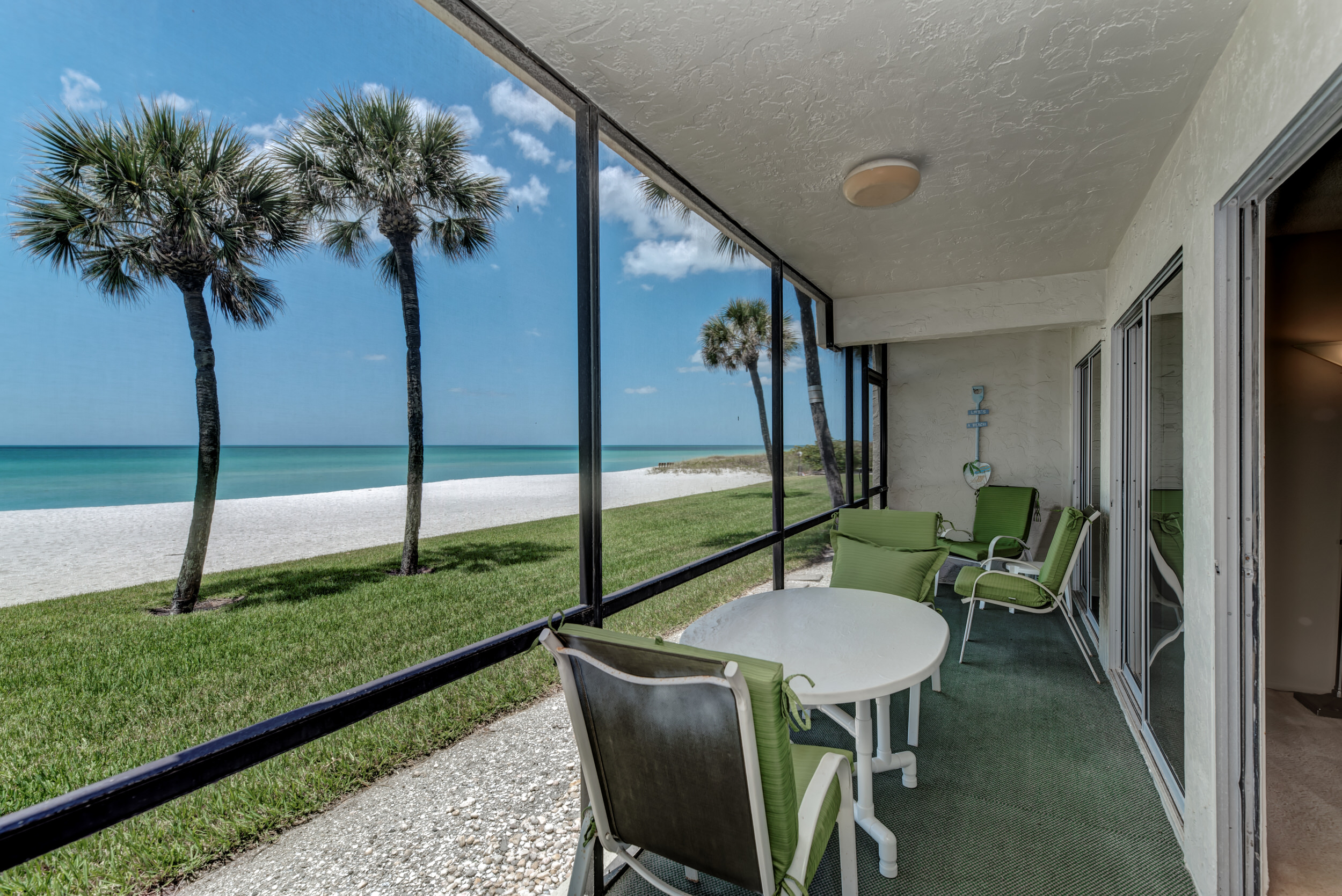 LOWEST PRICED PORTOBELLO GULF SIDE CONDO! Imagine waking up to this beachfront condo’s stunning Gulf of Mexico, sand, surf & sunset views 365 days a year?! Situated on the Sarasota County side of Longboat Key, Portobello, is a lovely gulf to bay community w/many conveniences both onsite as well as nearby. With 69 total units, occupants can appreciate the bay side amenities including: on-site management, clubhouse w/catering kitchen, 1 hard tennis court that’s also used for pickleball, heated swimming pool & day dockage on the fishing pier, picnic area, kayak launch, bike rack & outdoor shower. This 1st floor split plan 2b/2ba condo features a brand NEW AC ’19, NEW kitchen ’18 w/eat-in countertop for two, all new stainless steel appliances, quartz countertops, glass tile backsplash, tray ceiling w/fan, light grey cabinetry & tile flooring in main entry & kitchen w/recessed lighting to complete the space. This split plan offers each bedroom access to your lanai through sliding glass doors & more beach views from both bedrooms. Master closet affords ample space & interior stacked laundry closet. It’s so relaxing at Portobello that you won’t want to leave. Comes with 1 open assigned parking spot, a conveniently located storage unit across your front door and is being sold fully furnished as you see it, down to the linens & coffee maker. Within minutes from Publix grocery, renowned Longboat Key Club, a short drive inland to fine dining, shopping at St. Armands Circle & the culturally-rich downtown Sarasota.