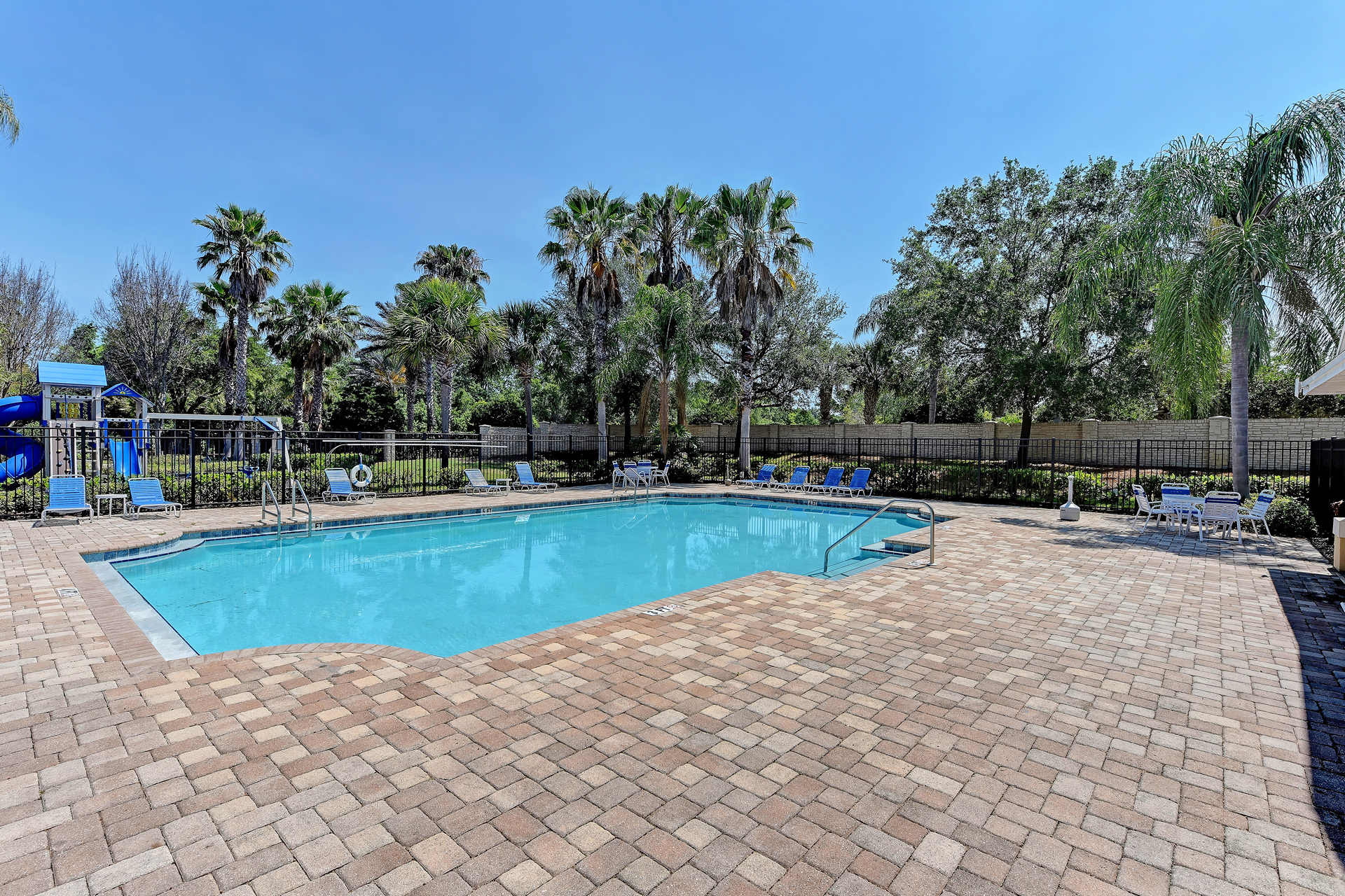 Welcome to your new home in Sabal Bay; a gated, maintenance free Pulte Homes townhome community. This move in ready condo offers great walkability to Fresh Market and lots of great eating establishments! Equipped with community pool, the neighborhood is also located in the midst of all the action yet tucked behind ample landscaping for some privacy too. No CDD fees! Not to mention, the pool is located directly across from this property but the lanai faces the opposite direction! This 3b/2.5ba bath layout offers all bedrooms upstairs on a split plan. Walking into your unit, you can come in from either the 1-car attached garage or your front foyer entryway. Convenient half bath downstairs along w/large kitchen that is really open to the living space & back lanai. You’ll immediately notice the spacious screened lanai in the back that brings in that Florida light as well as the lush greenery in the backyard space. With crown molding and neutral paint throughout, this property has lovingly been cared for by the sellers. Master suite offers vaulted ceilings, walk in closet and is fit for a king sized bed. Master bath has dual sinks and large soaking tub/shower combo. Two additional bedrooms share a hall bath. Washer/Dryer on upper level. Tile flooring throughout entire main level. Sabal Bay is a hidden jewel located off of Honore & University Pkwy, which is a walk to Fresh Market and restaurants!! Don’t miss the playground area either. Minutes from UTC Mall, bike to Whole Foods, Home Depot, shops & restaurants. Easy access to I75 and Sarasota Airport. This unit shows really. Water & trash in monthly fee too. Check out this easy to view property!