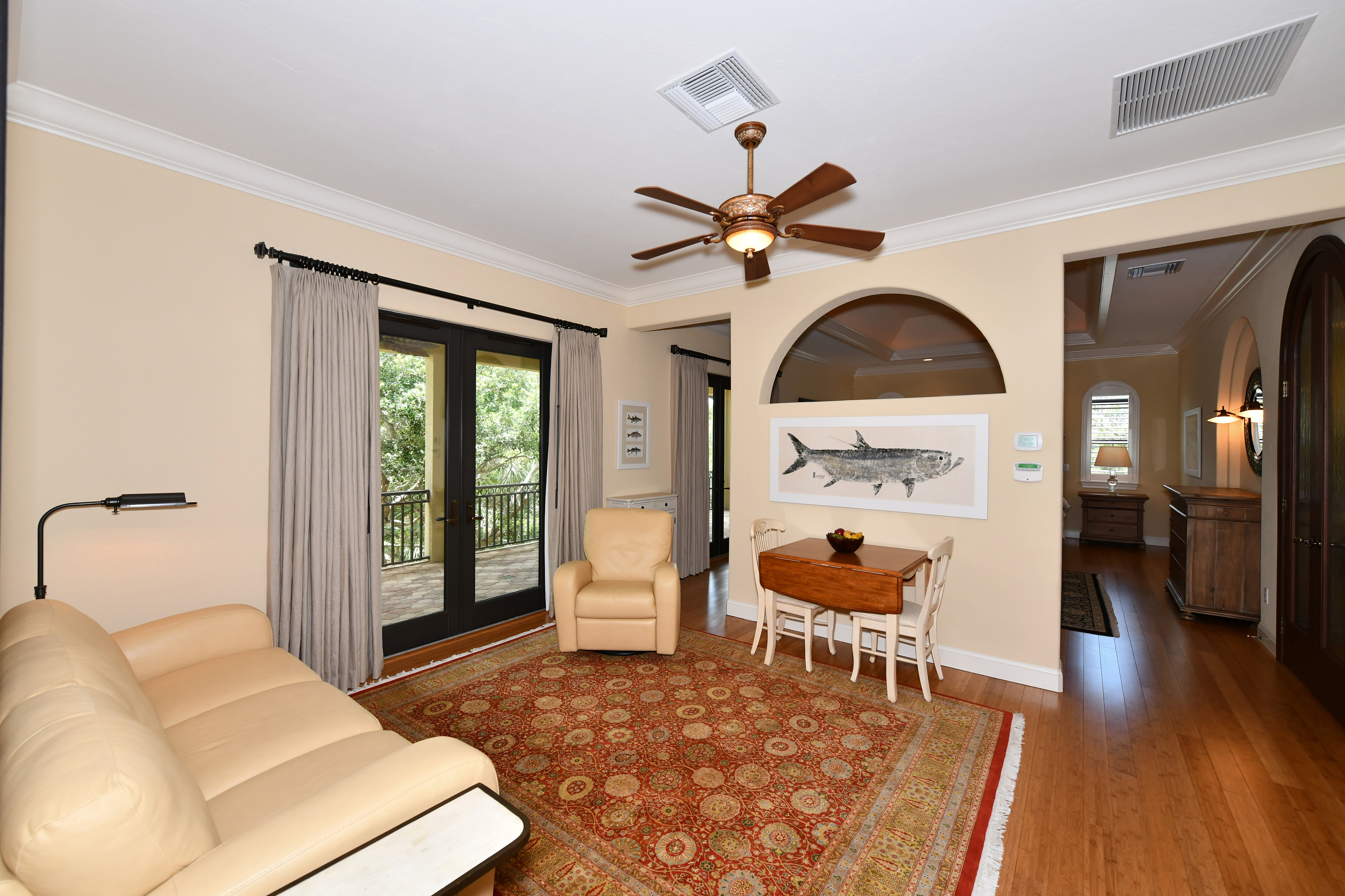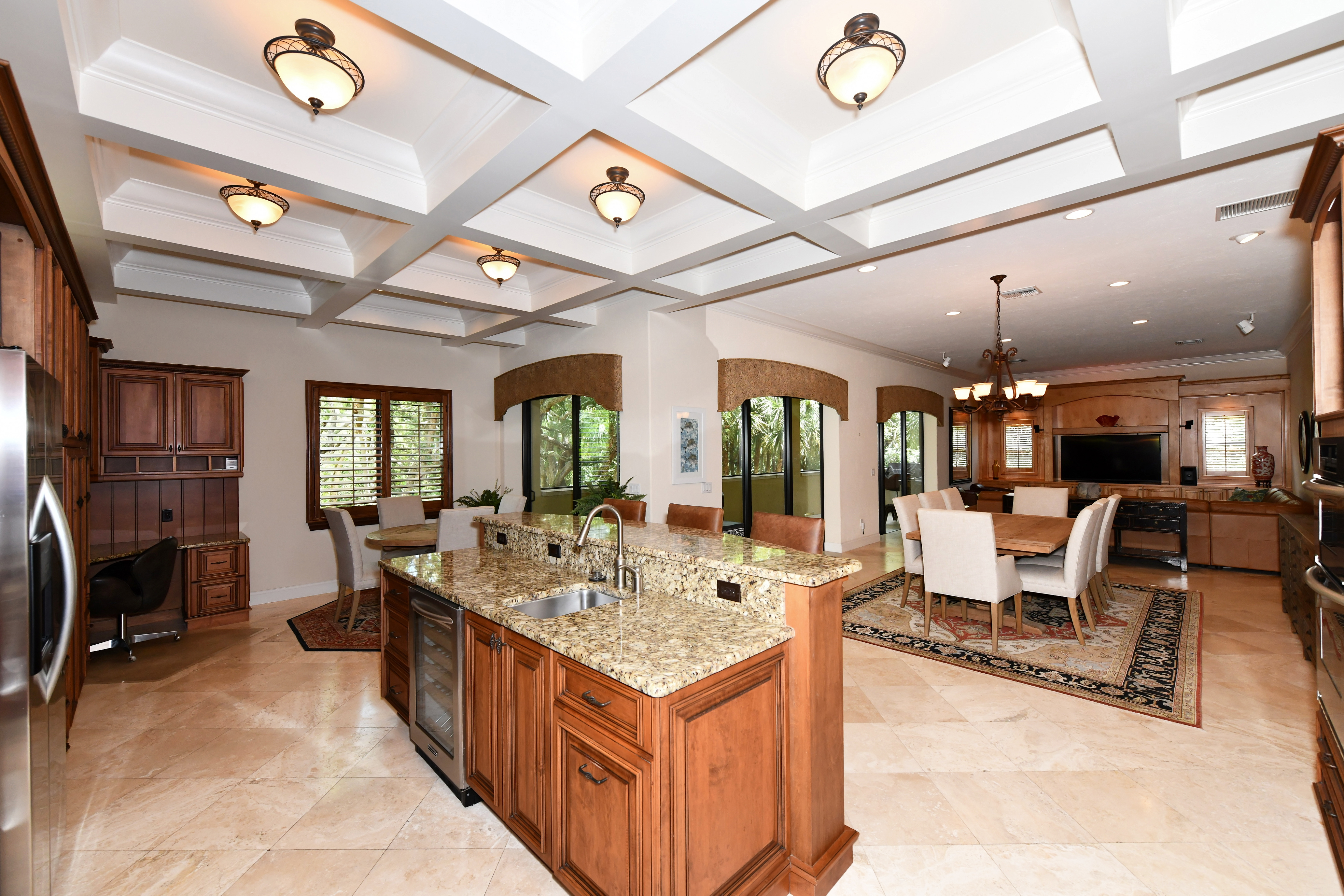 Specifications: 3 bedrooms, 4 bathrooms, 4,480 sq. ft. heated, impact doors and windows, gated entry, fully furnished, home generator, elevator, gourmet kitchen, travertine and bamboo flooring throughout, deeded beach access, dock with new 16,000 boat lift motor.