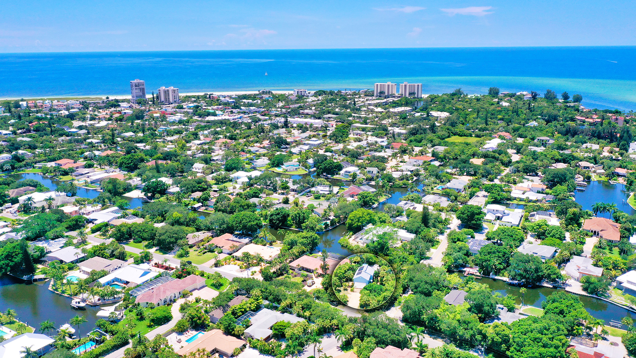 Florida charm exudes in this Siesta Key canal front home. Sitting on a larger than average corner lot and offering lots of mature foliage, mango and coconut trees, you’ll enjoy relaxing in your open pool as you soak up the rays and enjoy the birds and other wildlife around you. 103 feet of water frontage, much of which is covered with trimmable mangroves and includes a natural seawall, so there’s no need to maintain or pay for an expensive man-made seawall here! A bit of an irregular shaped lot line as well, with 155 feet deep; lots of room to play, grow, tear down or add on! A Key West feeling design, complete with metal roof, this 3 bed, 3 bath turnkey furnished property offers open living upstairs with a livable nonconforming space downstairs that isn’t included in the total under air square footage. Easy living with great room floor plan upstairs including: vaulted ceilings, 2 sets of French doors that open up to your oversized balcony overlooking the water front and backyard, bamboo flooring, master bedroom with ensuite bath plus guest bedroom and full bathroom. Downstairs could be utilized as a rental, mother in-law space, game room or other creative space since there is a separate entry from the main level. We are considering this to be the home’s 3rd bedroom. It features tile flooring, a full bath, Murphy bed and a path out to the pool and canal. Outside you’ll get to enjoy lots of privacy, large solar heated Pebble Tec resurfaced {2003} pool, outdoor shower and dock. Access both the Bay and Gulf of Mexico from your boat dock via the intercoastal waterway. Approximately 6 feet deep at the dock, the owner used to have a 17ft boat. To the other side, you’ll also notice a kayak launch! Other updates include HVAC systems {2009 & 2013}, new washing machine, metal roof, and Hardie Plank siding. Oh and this is neither in an HOA nor a CDD community which means no fees! Within biking distance to both the Siesta Key Village and world famous Siesta Key Beach. An easy, beautiful tree lined walk to the Out of Door Academy {ODA}, a highly sought after private day school for grades PreK-12th. Siesta Key offers something for all ages and downtown Sarasota even more, from exquisite to very casual in/outdoor dining options, boutique shopping, opera, ballet, open farmers’ markets and festivals, and a myriad of other options. Sarasota can be enjoyed by all ages, from those who like to stay active in the community, or the recluse who simply wants to enjoy nature and our area wildlife.
