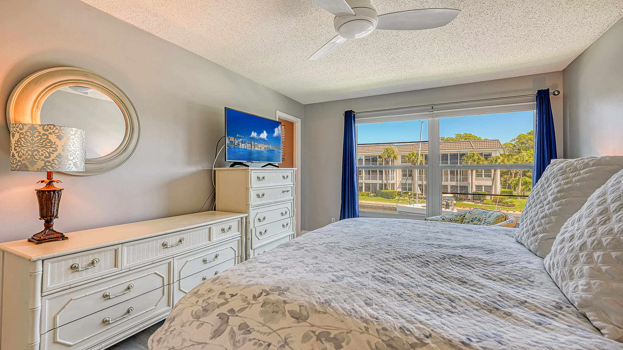 Longboat Harbour is a large gated condo community on the Manatee County side of Longboat Key’s 11-mile stretch. This 2nd floor two bed, two bath condo with public elevator access has 2 bedrooms, 2 bathrooms and several great upgrades including: plank vinyl flooring throughout, fresh paint, interior washer/dryer {included} and updated kitchen in 2020 including stainless steel appliances, granite countertops and light cabinetry. If you enjoy walking to the beach, having waterfront views, using great outdoor amenities and being able to have your boat in your backyard is all your speed, then you’ll certainly want this turnkey unit on your list! Boasting 300 units, which also helps keep each unit’s fees lower than much of the island, the community offers a great deal of fun things to do including four swimming pools, tennis/pickleball courts, a gym, woodworking shop, art studio, banquet hall, and more. Get involved in Bridge or Mah Jongg, partake in one of their fun social pizza parties and more when you become an owner. Best of all Longboat Harbour has private beach side access within a true WALK from your unit {located south of the community at 4415 Gulf of Mexico Dr; must have fob to access if driving} that includes a beach house, picnic tables, showers, restrooms, excess beach chair storage AND ample parking – huge benefits! Currently not being rented but we do have a prior rental history so please inquire with us for that info if you’re interested. So many great improvements have been done recently to the common elements too: paved walkways, all new paint on the buildings, and new landscaping throughout.
